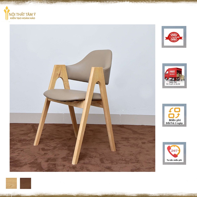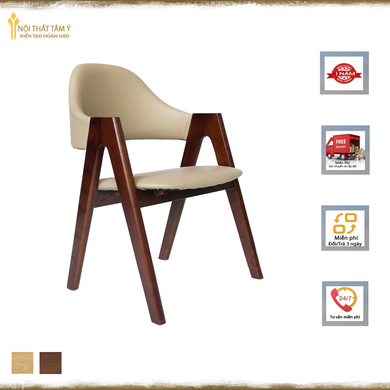 Ghế ăn chữ A là mẫu ghế được thiết kế tinh tế, thanh lịch, với chân ghế hình giống chữ A được kết hợp kiểu dáng tựa lưng cao, bản lưng rộng mang vẽ đẹp hiện đại, sang trọng. Đặc biệt, sản phẩm sử dụng cảm giác êm ái, thoải mái khi ngồi nghỉ ngơi. Do đó, rất phù hợp với không gian của một quán cafe, nhà hàng hoặc phòng ăn khách sạn.- Chất liệu: Gỗ cao su, nệm simili