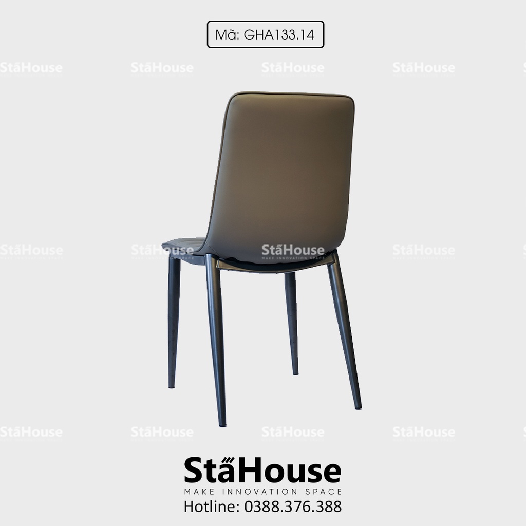 Chất liệu: Mặt nệm bọc da PU, mút đệm có sự đàn hồi. Chân kim loại sơn tĩnh điện, khung ghế có lớp sơn chì bóng mịn.Kích thước: 450x480x840mm