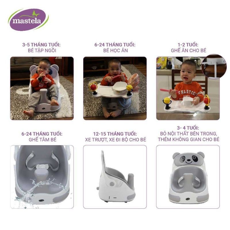 - Tên sản phẩm: Ghế tập ngồi lót silicon, ghế ăn dặm, xe kéo 3 in 1 Mastela 1018