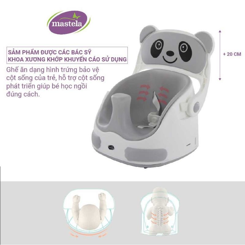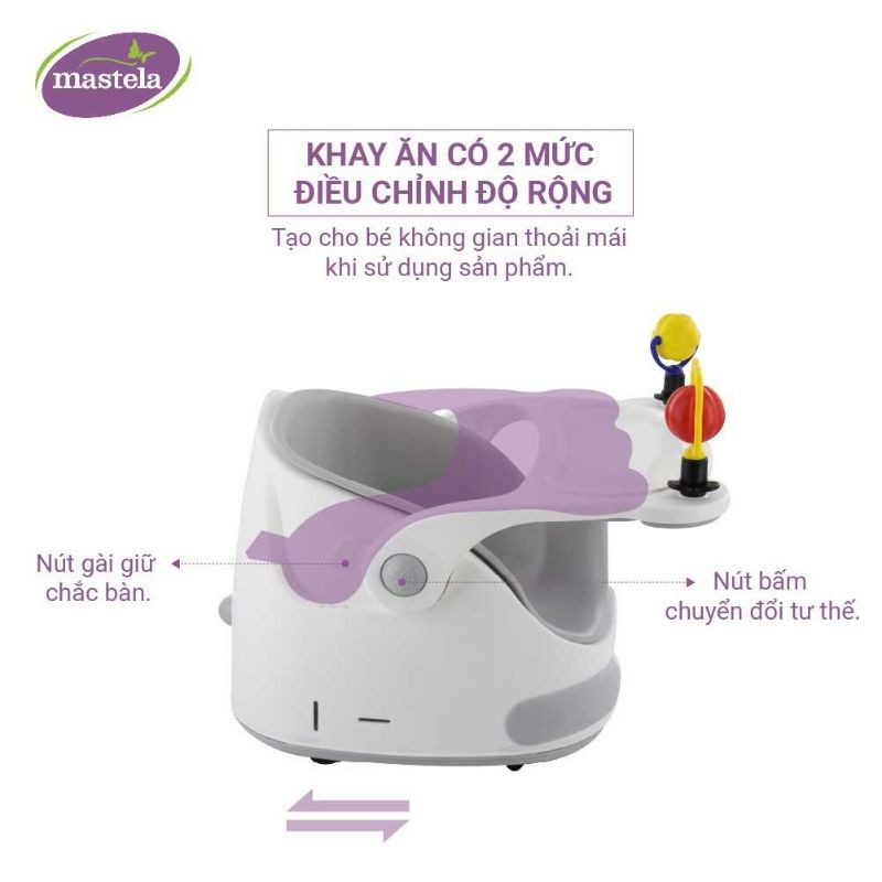 Khi bé đến giai đoạn ăn dặm, các mẹ nên rèn luyện cho bé thói quen ngồi ăn tại chỗ ngoan ngoãn. Ghế ăn dặm Mastela 1018 không chỉ tốt cho hệ tiêu hóa của bé mà còn giúp bé hình thành tính tự lập ngay từ nhỏ. Đặc biệt, sản phẩm còn có các bánh xe linh hoạt có thể biến thành một chiếc xe kéo cùng bé và mẹ đi dạo. Sản phẩm cũng có thể dùng cho bé từ 4 tháng trở lên tập ngồi sớm.THÔNG TIN SẢN PHẨM