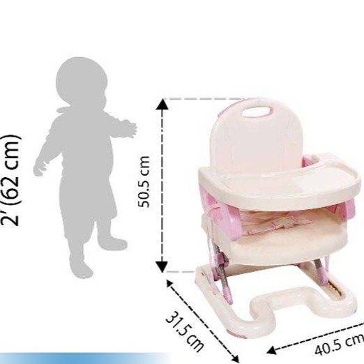 Ghế ngồi ăn có thể điều chỉnh được theo 3 cấp độ cao, thấp khác nhau từ 10-24cm so với mặt đất.Ghế có trọng lượng 4,2kg, ghế có thể gập lại, thuận lợi cho việc đi du lịch.