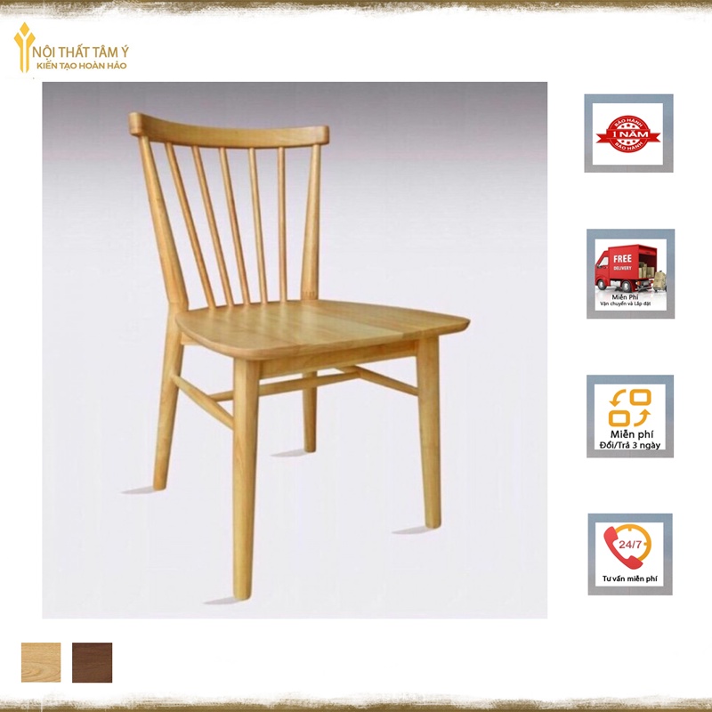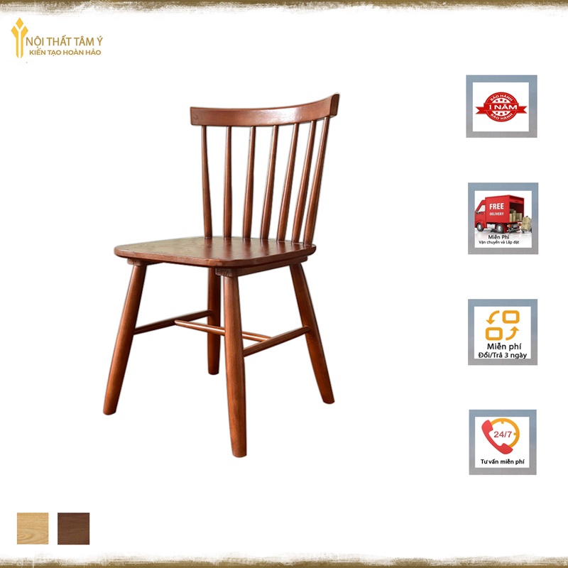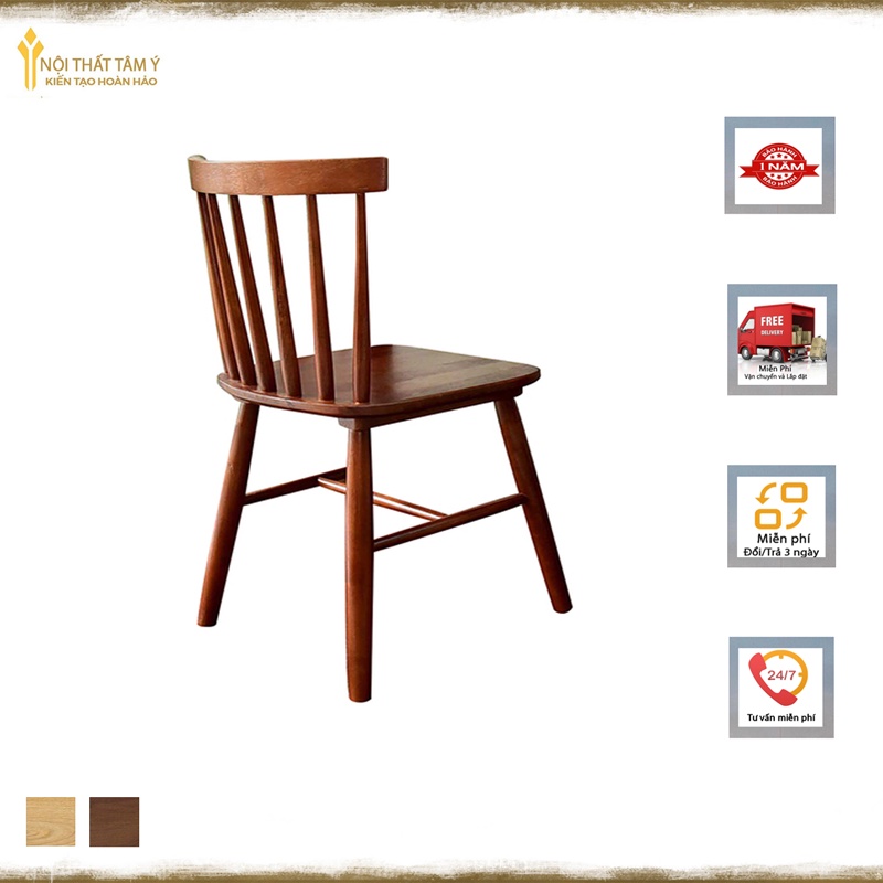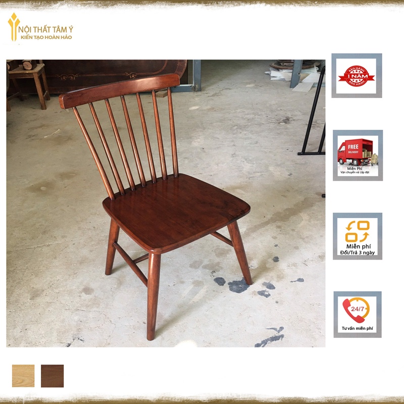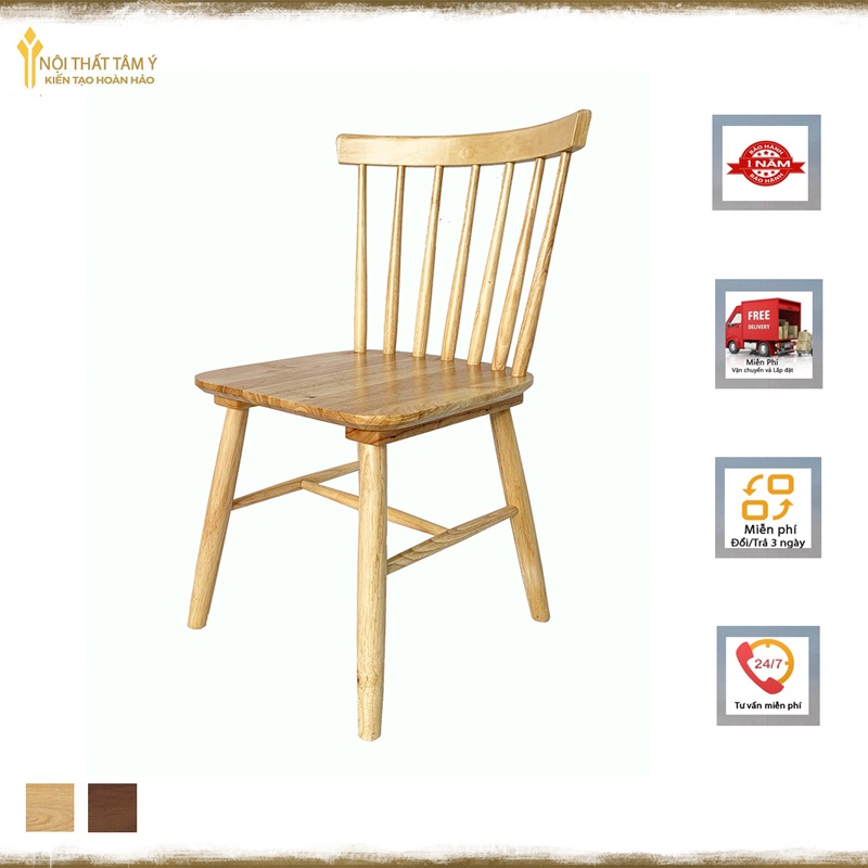 Ghế Song Tiện được thiết kế thanh mảnh với lưng tựa hình nan quạt cách điệu bởi các nan gỗ song song phá cách rất phù hợp cho những không gian mang hơi hướng nhẹ nhàng, thanh lịch.- Chất liệu: Gỗ cao su