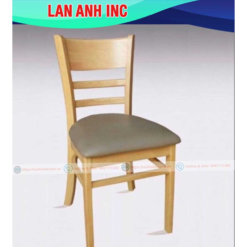 - Chất liệu: Thân ghế làm bằng gỗ cao su sơn pu bóng, nệm bọc simili .