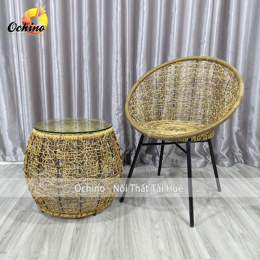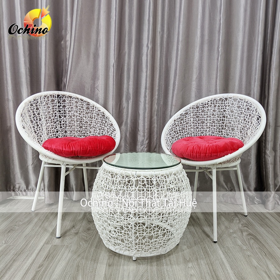 - Ghế ban công dây nhựa giả mây đan rối chuẩn.