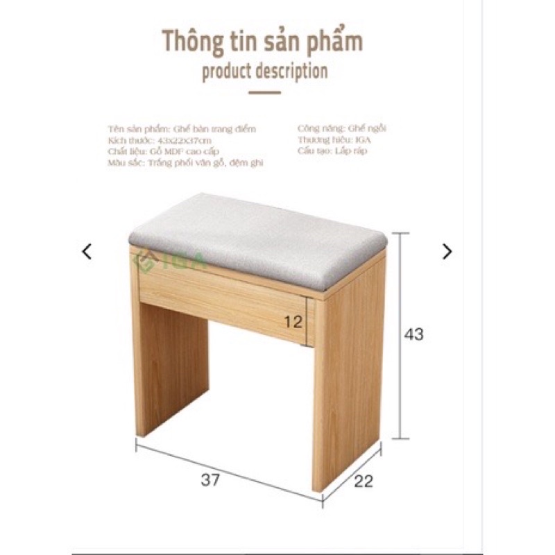 Giới thiệu ghế bàn trang điểm bàn phấn , ghế sofa ghế đi giày gỗ mặt đệm GP138.03