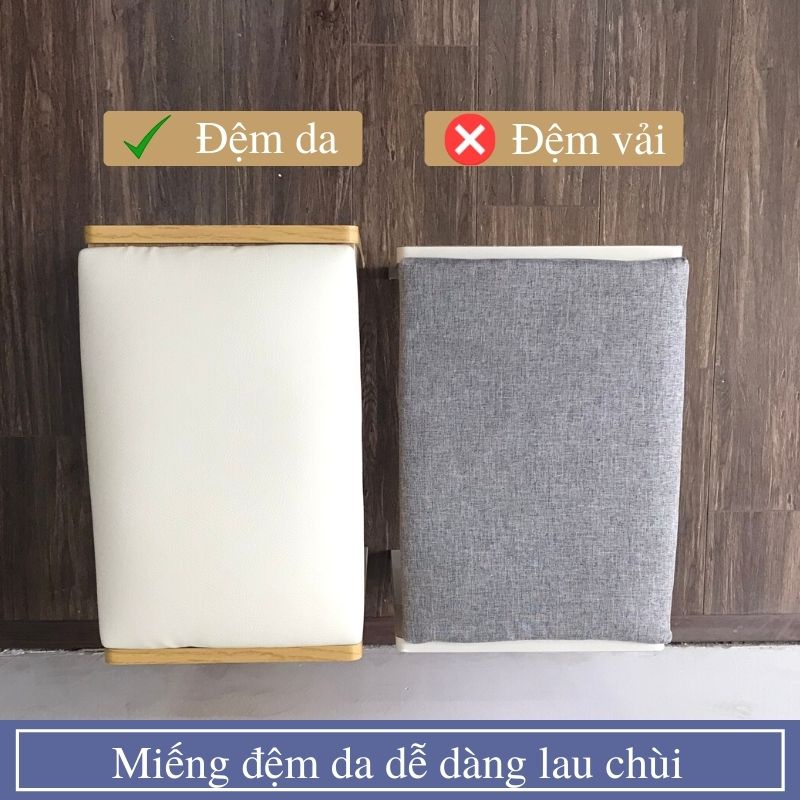 - Ghế không tựa màu trắng/vân gỗ: Khung gỗ, đệm bọt biển mặt da