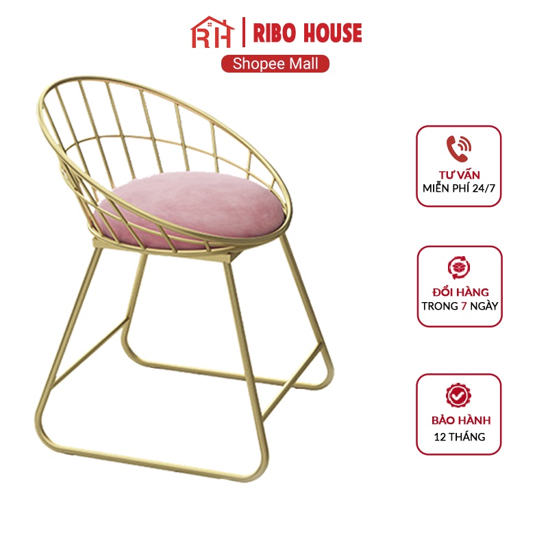 Nhà cửa & Đời sống > Nội thất > Ghế, ghế dài, ghế đẩu || Ghế bàn trang điểm RIBO HOUSE đệm vải nhung nỉ, ghế lùn trang trí phòng ngủ ban công quán cafe spa nails RIBO55Còn hàng