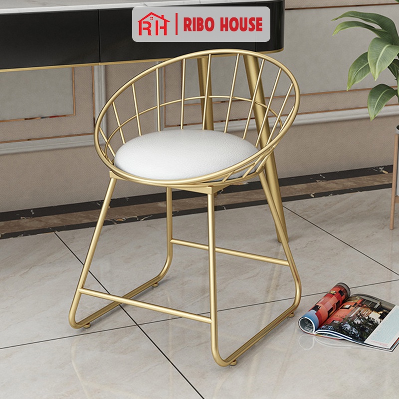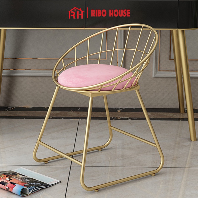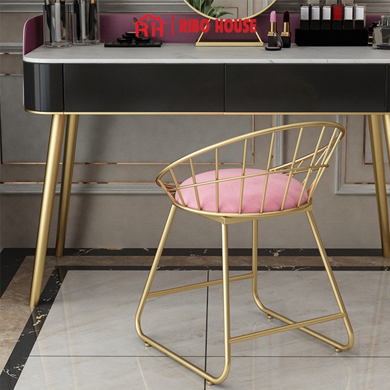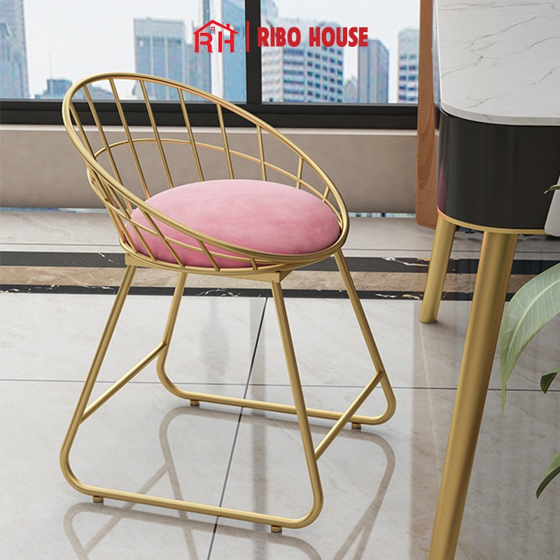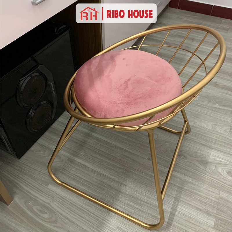 Ghế bàn trang điểm RIBO HOUSE đệm vải nhung nỉ, ghế lùn trang trí phòng ngủ ban công quán cafe spa nails RIBO55