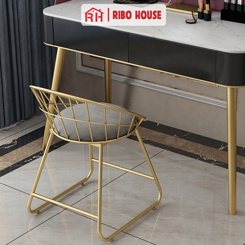 Giới thiệu Ghế bàn trang điểm RIBO HOUSE đệm vải nhung nỉ, ghế lùn trang trí phòng ngủ ban công quán cafe spa nails RIBO55
