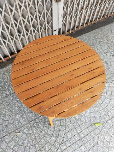 Bàn xếp tròn đường kính 60cm. Hoặc vuông 60*60cm được sản xuất từ gỗ bạch đàn, gỗ tràm tự nhiên, thân thiện với môi trường... Thích hợp dùng cho bàn ăn, bàn học, bàn cà phê ngoài trời... Khi ko sủ dụng xếp lại giúp tiết kiệm ko gian.... Những vị khách quá kỉ tính thì mình khuyên ra xem trực tiếp mua sẽ tốt hơn nha. khách ko phải thất vọng, và shop cũng ko thất vọng với đánh giá của khách.Mời quý khách xem hàng trực tiếp tại 264F Bạch Đằng P24 quận Bình Thạnh TPHCM