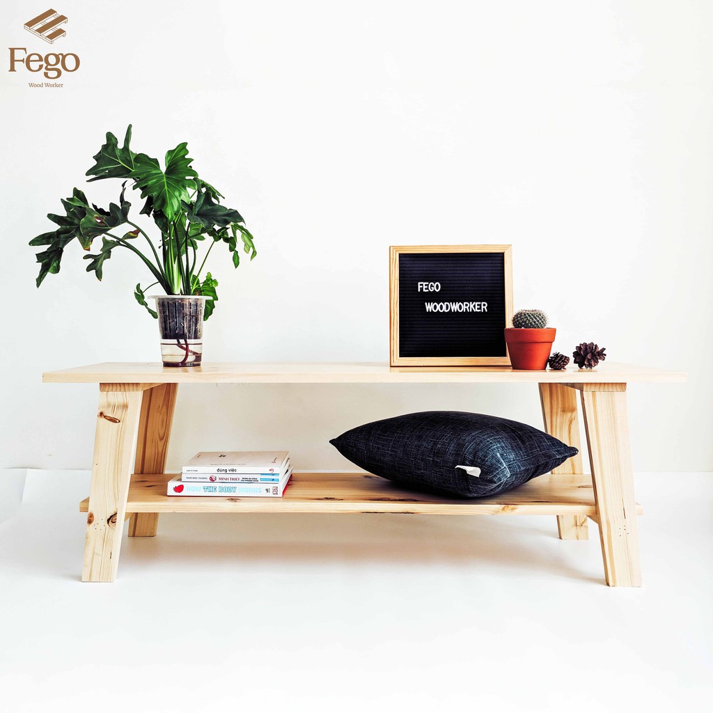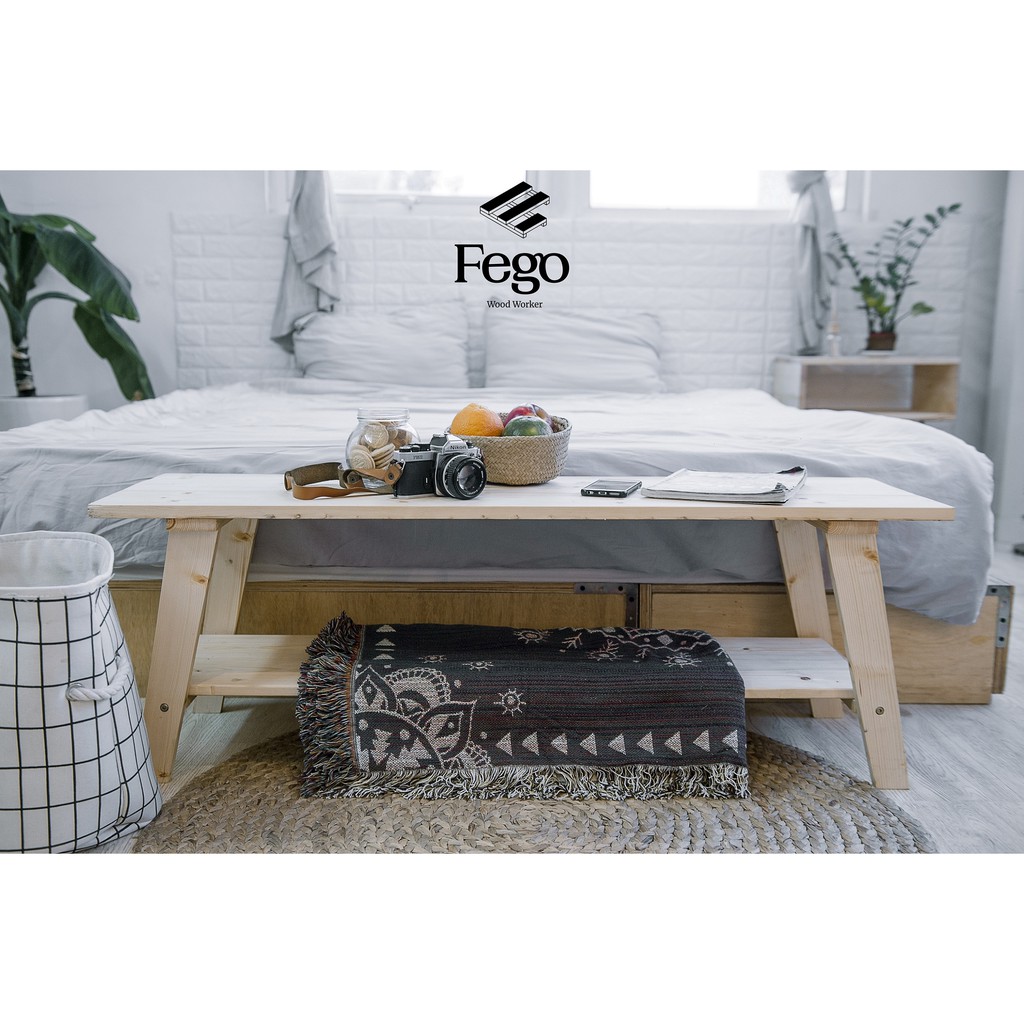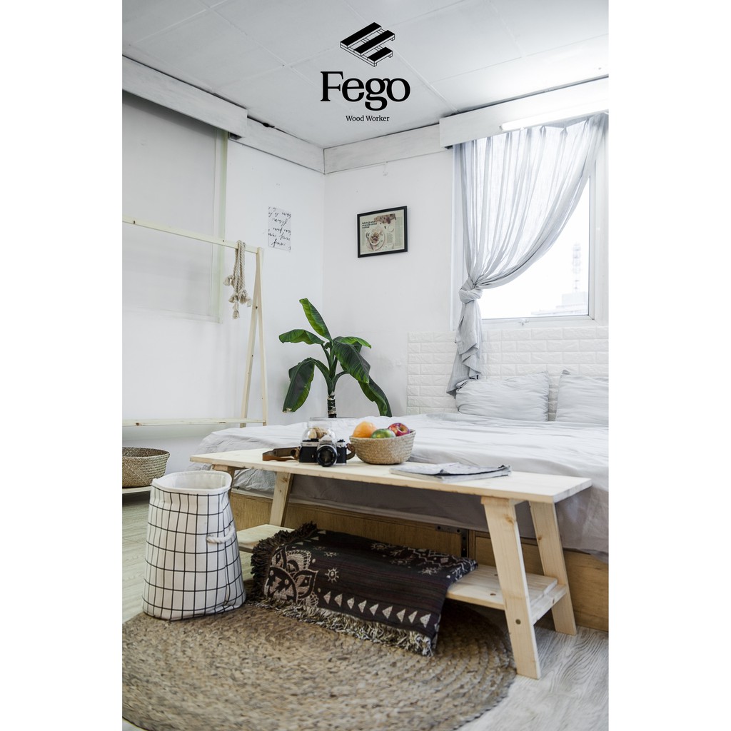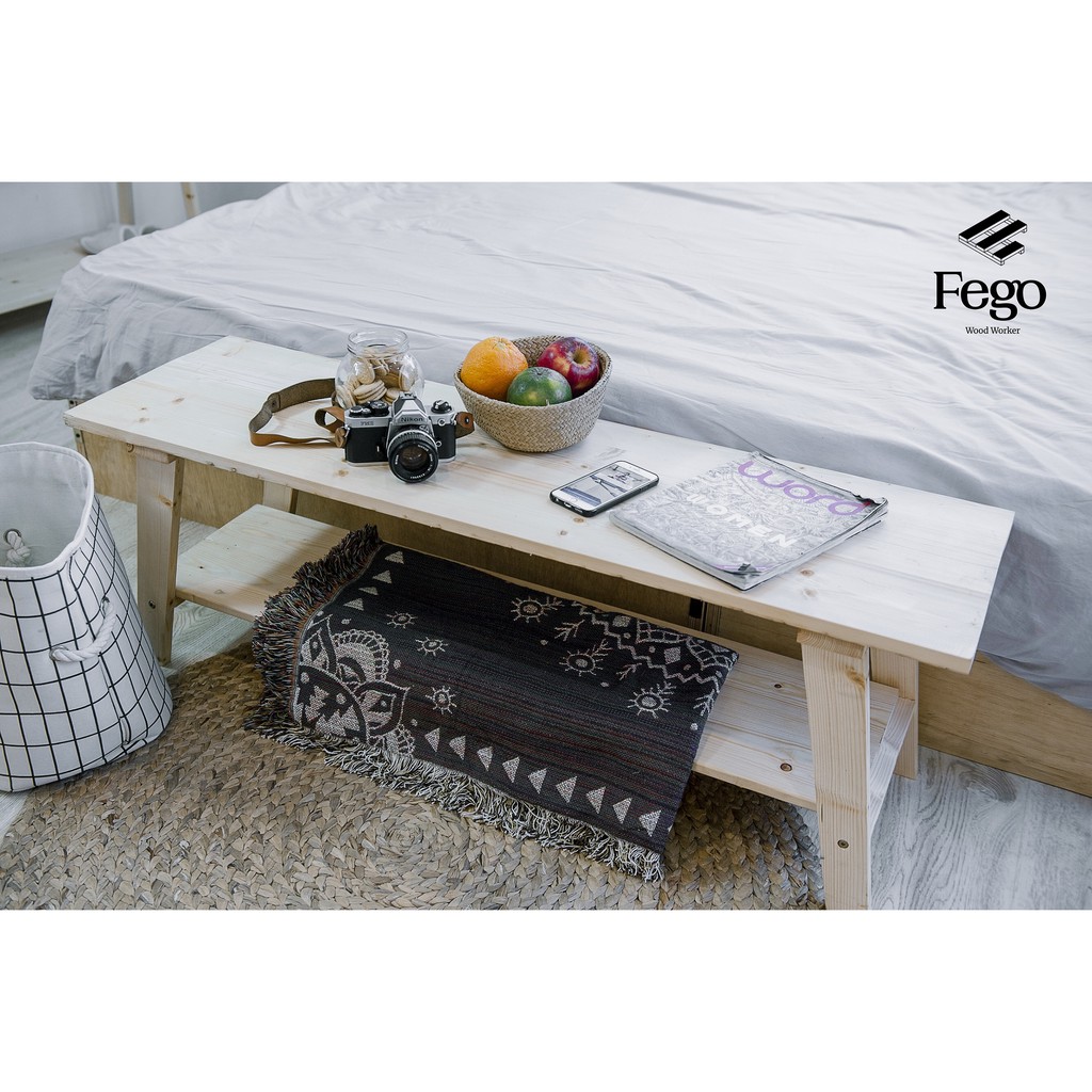 Ghế băng dài gỗ thông tự nhiên 2 tầng chân gỗ/ Sofa Thư Giãn, đi giày Fego0025