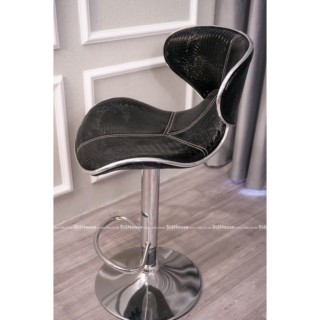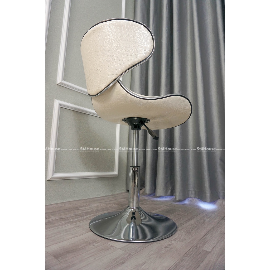 Ghế Bar, Ghế Cafe Ban Công Ngồi Làm Việc Phong Cách Bắc Âu Thời Trang BAR301Sản phẩm ghế bar bọc da cao cấp với phần ghế ngồi được làm từ Da CÁ SẤU cao cấp tạo ra sự êm ái và thoải mái cho người dùng. Chân ghế làm từ thép mạ Ni-Cr sáng bóng. Kết cấu vững chắc và kiểu dáng hiện đại. Ghế có thể nâng xoay hay hạ xuống.