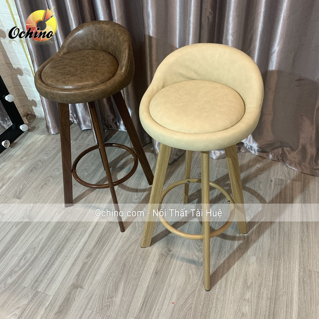 Ghế Bar, Ghế cafe Xoay 360 độ bọc da cao cấp Chân Sắt Sơn Giả Gỗ (Hàng Sẵn)⭐Thông tin sản phẩm