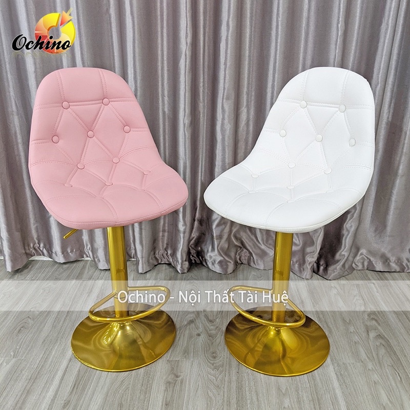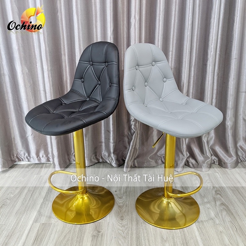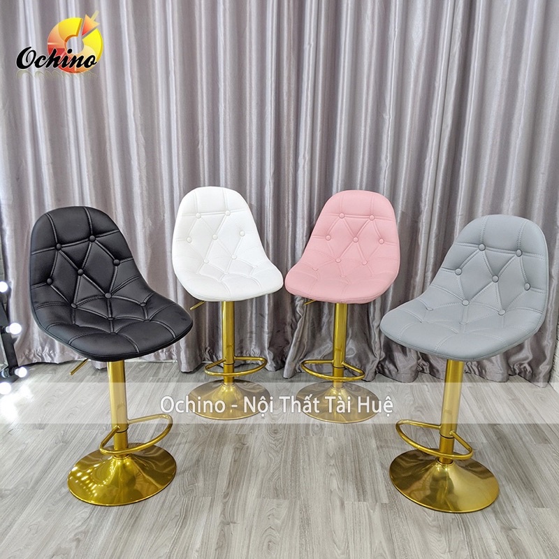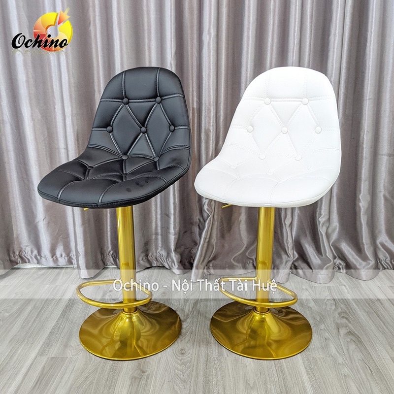 Ghế Bar, Ghế quầy lễ Tân Bọc Da Dày Dặn Chân Vàng Sơn Tĩnh Điện Điều Chỉnh Độ Cao 60/80 Và Xoay 360 Độ ( Có Sẵn)