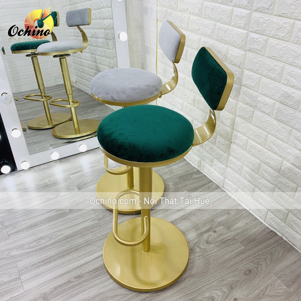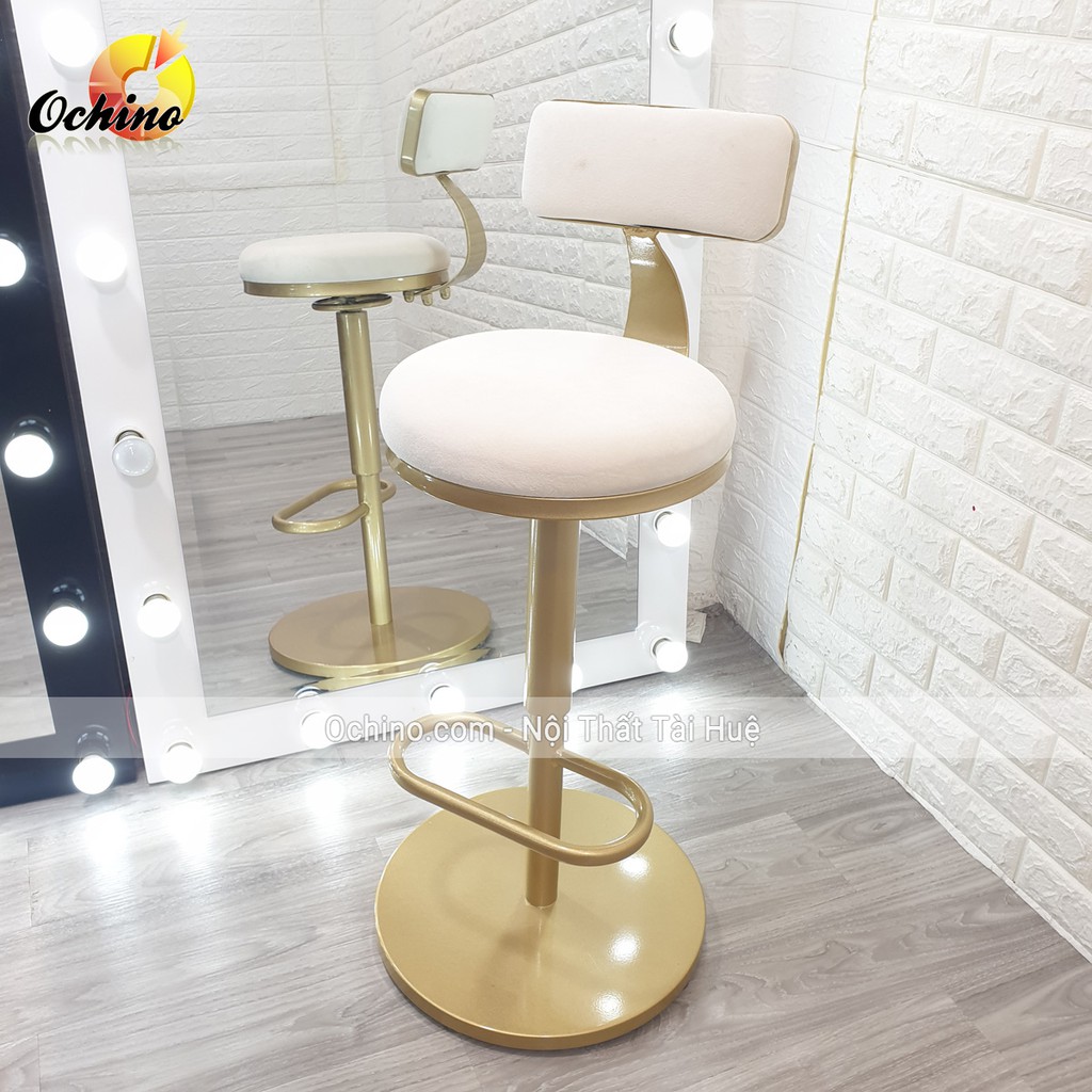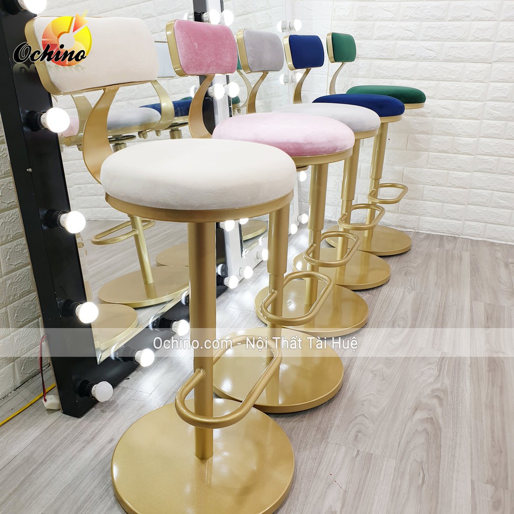 Ghế Bar, Ghế Quầy lễ Tân, ghế TRang Điểm Chân mạ vàng nhạt cao cấp (Hàng có Sẵn)