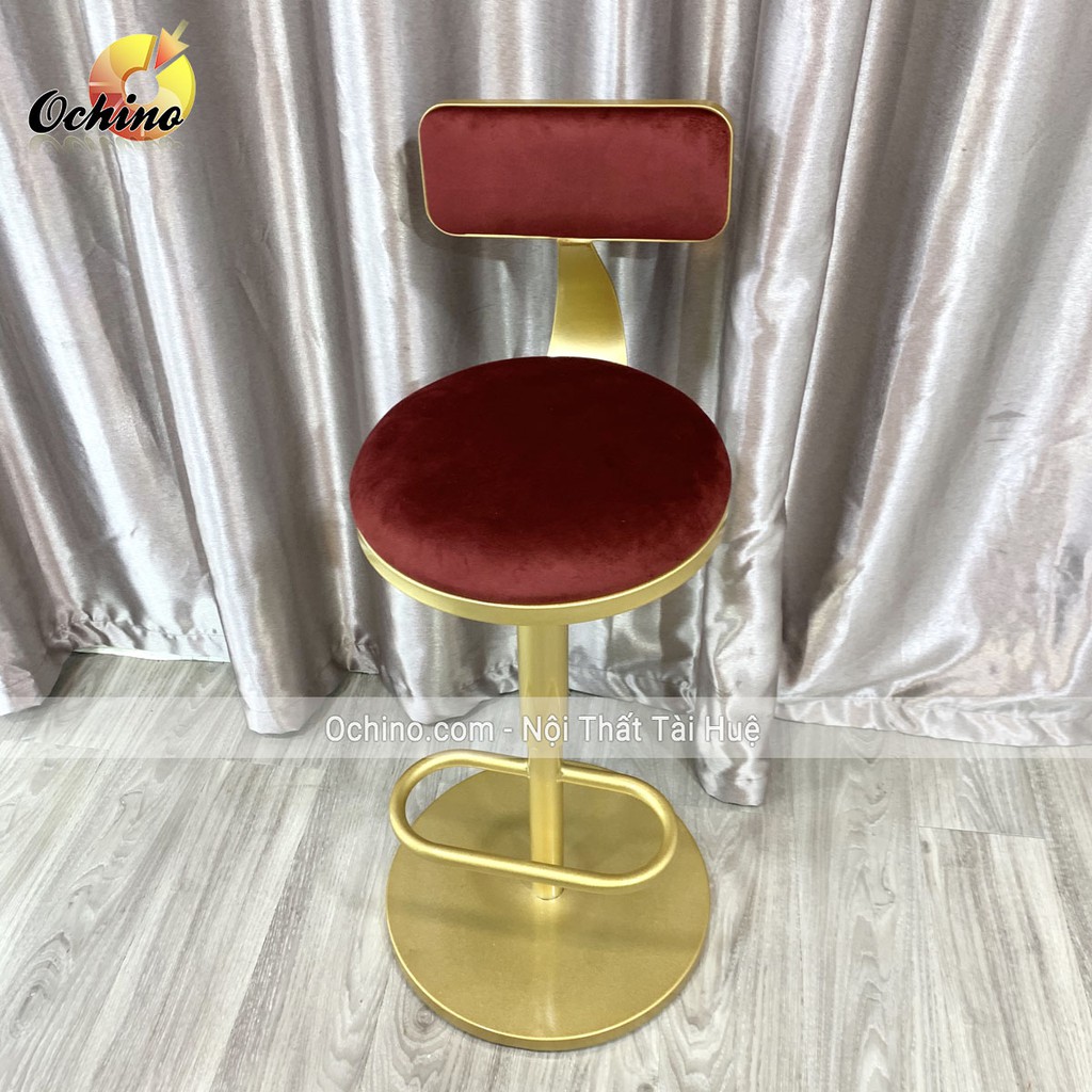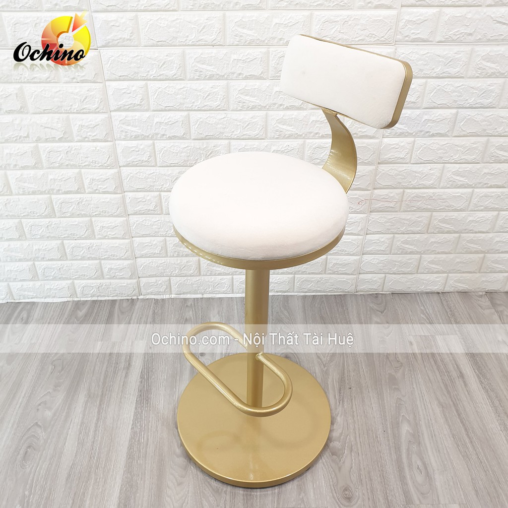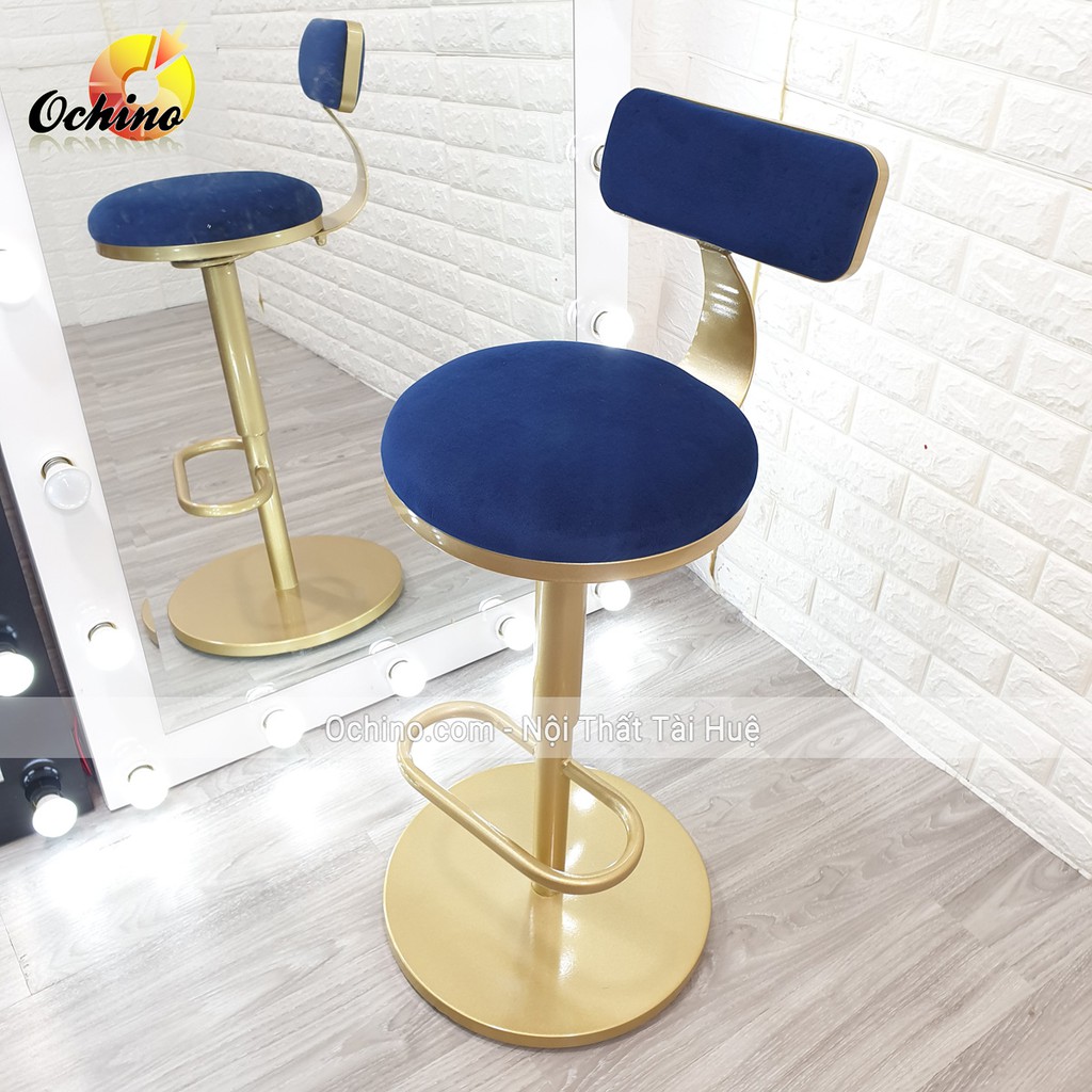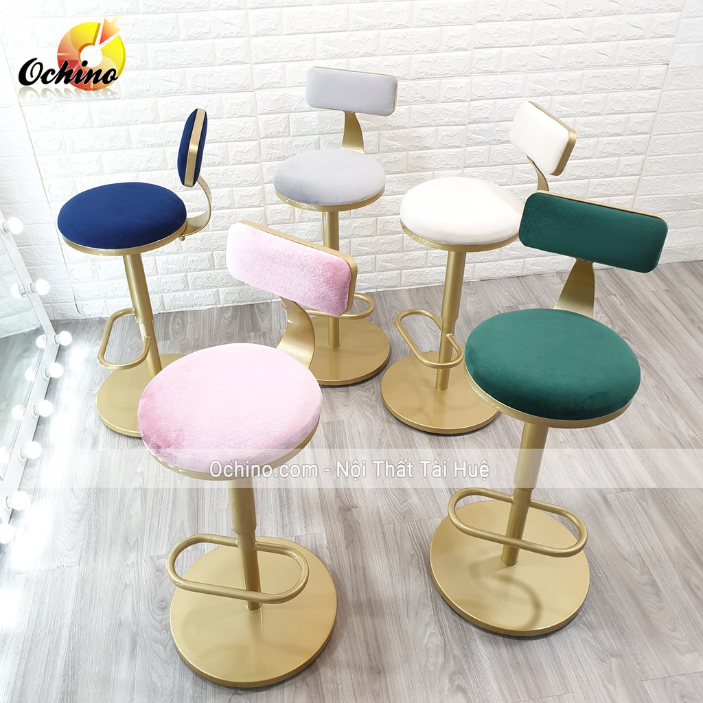 Ghế Bar, Ghế Quầy lễ Tân, ghế TRang Điểm Chân mạ vàng nhạt cao cấp (Hàng có Sẵn)