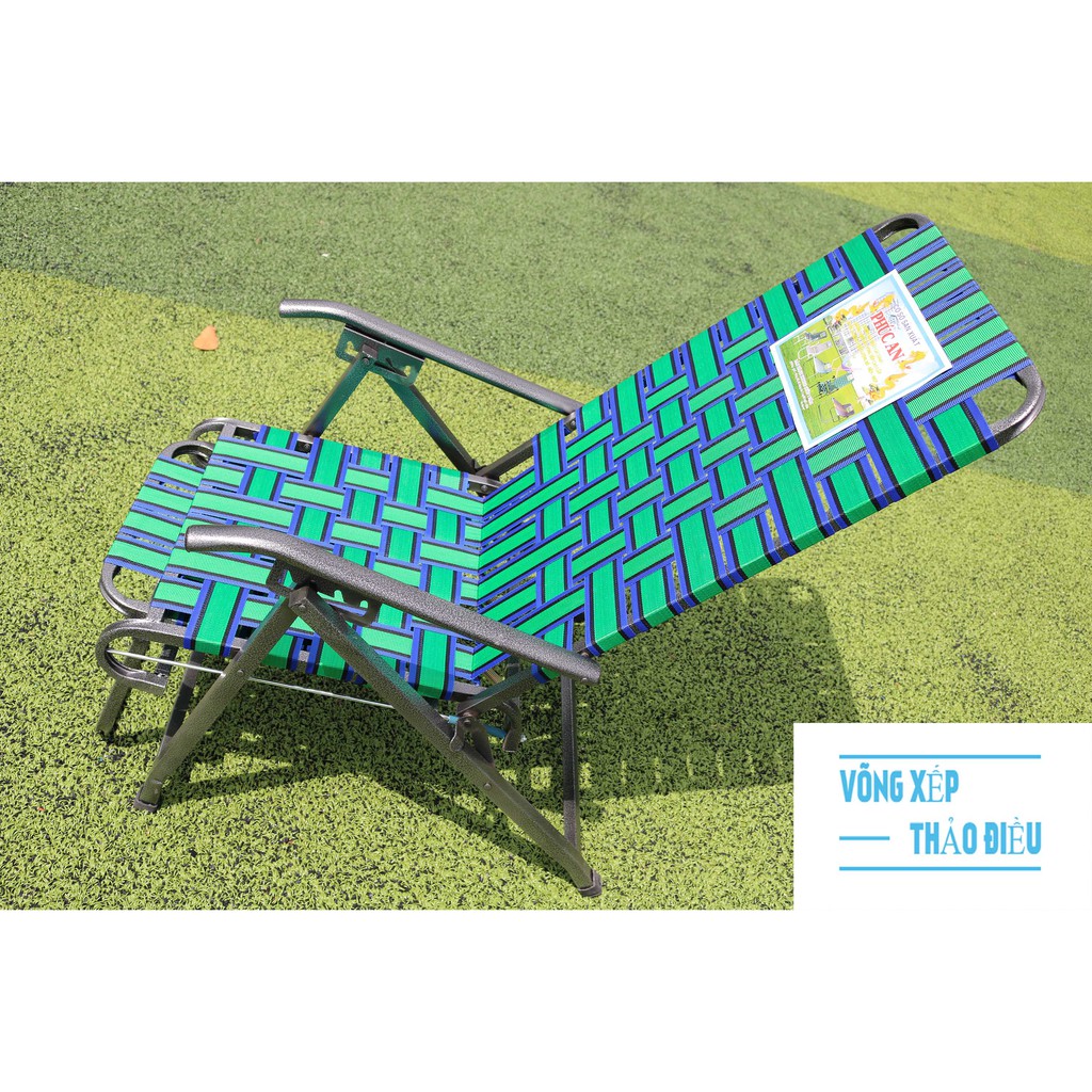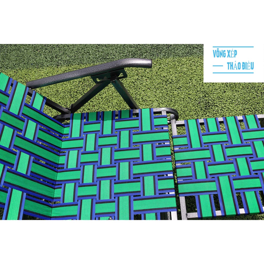 Ghế được đan bằng Dây dù bẹ thoáng khí nên sẽ làm cho người sử dụng cảm giác mát mẻ thoải mái và nấc điều chỉnh ngã lưng linh hoạt 4 nấc để có thể thay đổi các tư thế nằm nhằm mang lại thoải mái nhất cho người sử dụng.