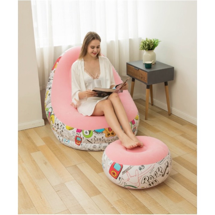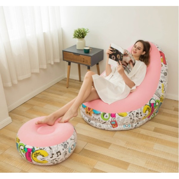 Nhà cửa & Đời sống > Nội thất > Ghế sofa || Ghế Bơm Hơi Kèm Gác Chân Hoạ Tiết Graffiti PinkMuiceCòn hàng