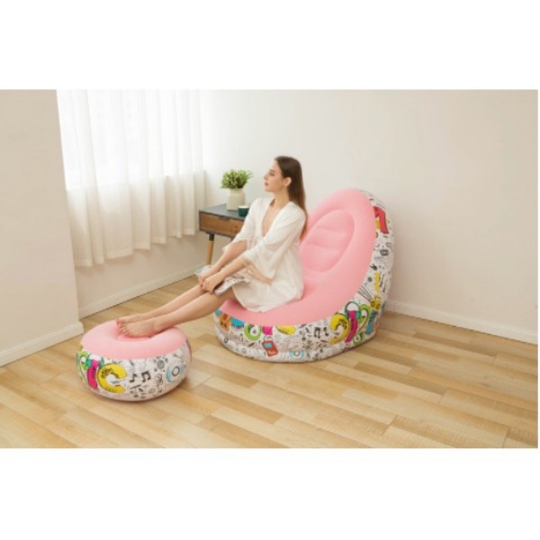 Ghế Bơm Hơi Kèm Gác Chân Hoạ Tiết Graffiti PinkMuice
