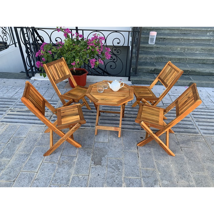 ⭐ Bàn ghế cafe gỗ tràm được thiết kế theo phong cách hiện đại, có thể gấp lại dễ dàng khi không sử dụng để tiết kiệm diện tích.