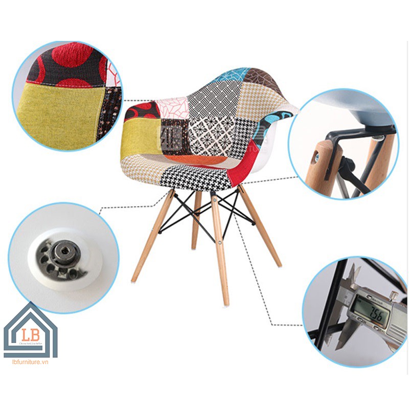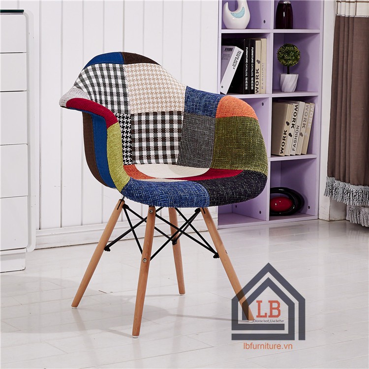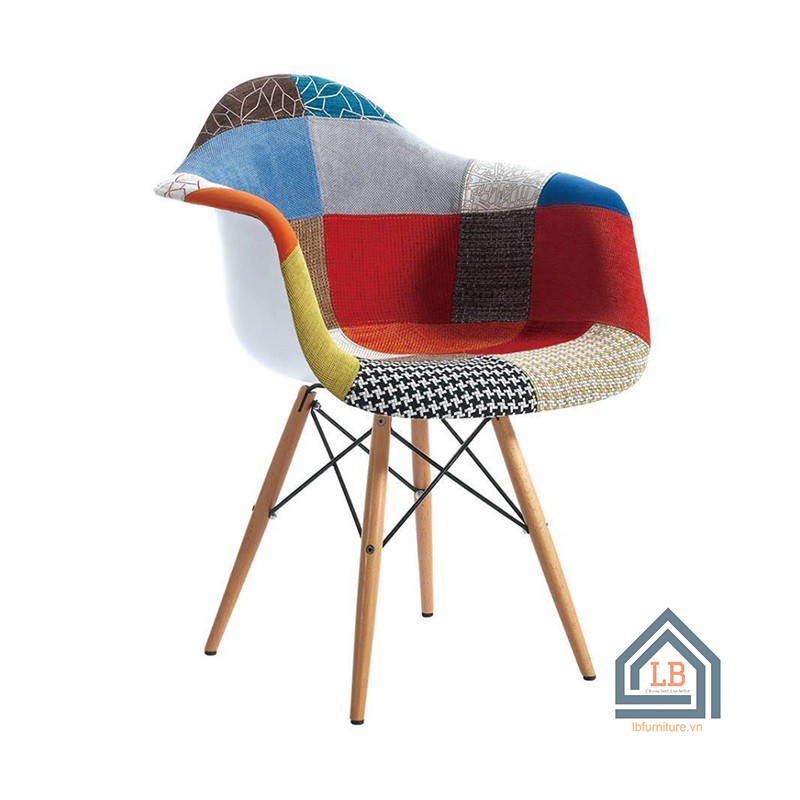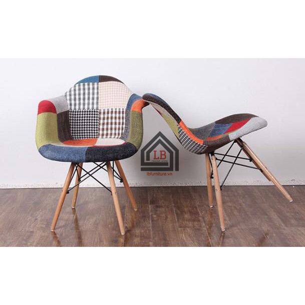 Ghế cafe bành vải thổ cẩm chân gỗ