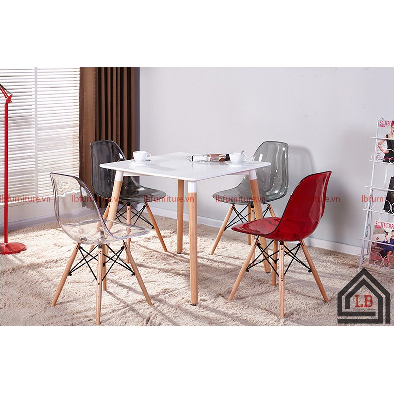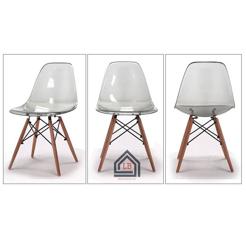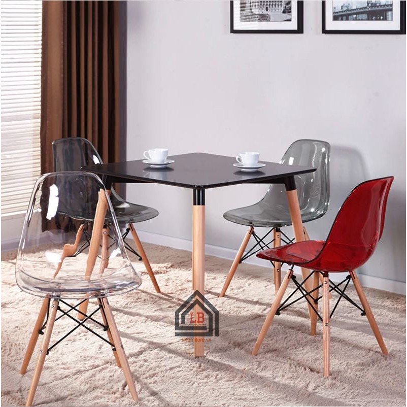 Giới thiệu Ghế cafe DSW nhựa trong chân gỗ