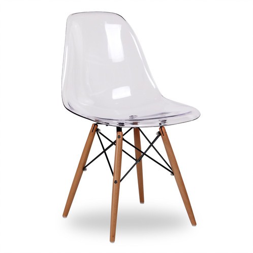 Ghế cafe DSW nhựa trong chân gỗ