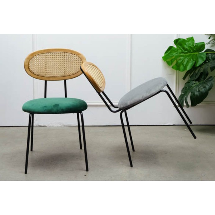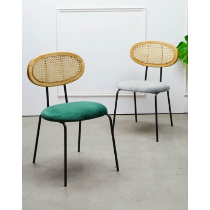 GHẾ CAFE MARISVới thiết kế tinh tế , chân ghế được làm bằng chất liệu sắt sơn tĩnh điện tạo sự chắc chắn khi ngồi , phần lưng ghế đưuọc làm bằng chất liệu gỗ liên kết với chất liệu lưới mây tô điểm thêm 1 phong cách tao nhã , nổi bật của tổng thể . mặt ngồi ghế được bọc bằng vải nhung cao cấp . đây chính là mẫu ghế phù hợp cho bàn ăn gia đình cũng như bàn ăn nhà hàng cafe sang trọng