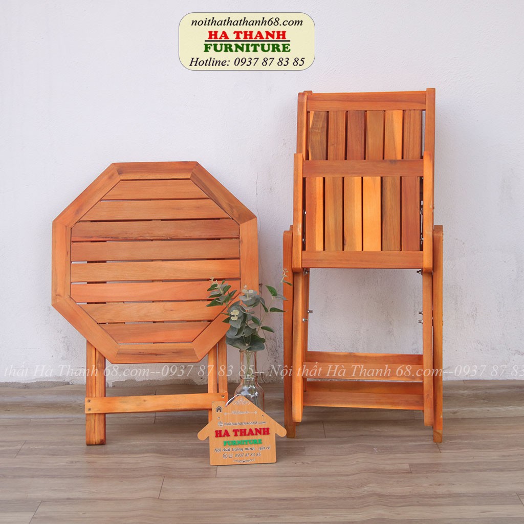 • Bàn ghế cafe xếp gọn gỗ tràm có thế dùng trong gia đình dùng làm bàn uống nước đặt ngoài ban công hay sân vườn.