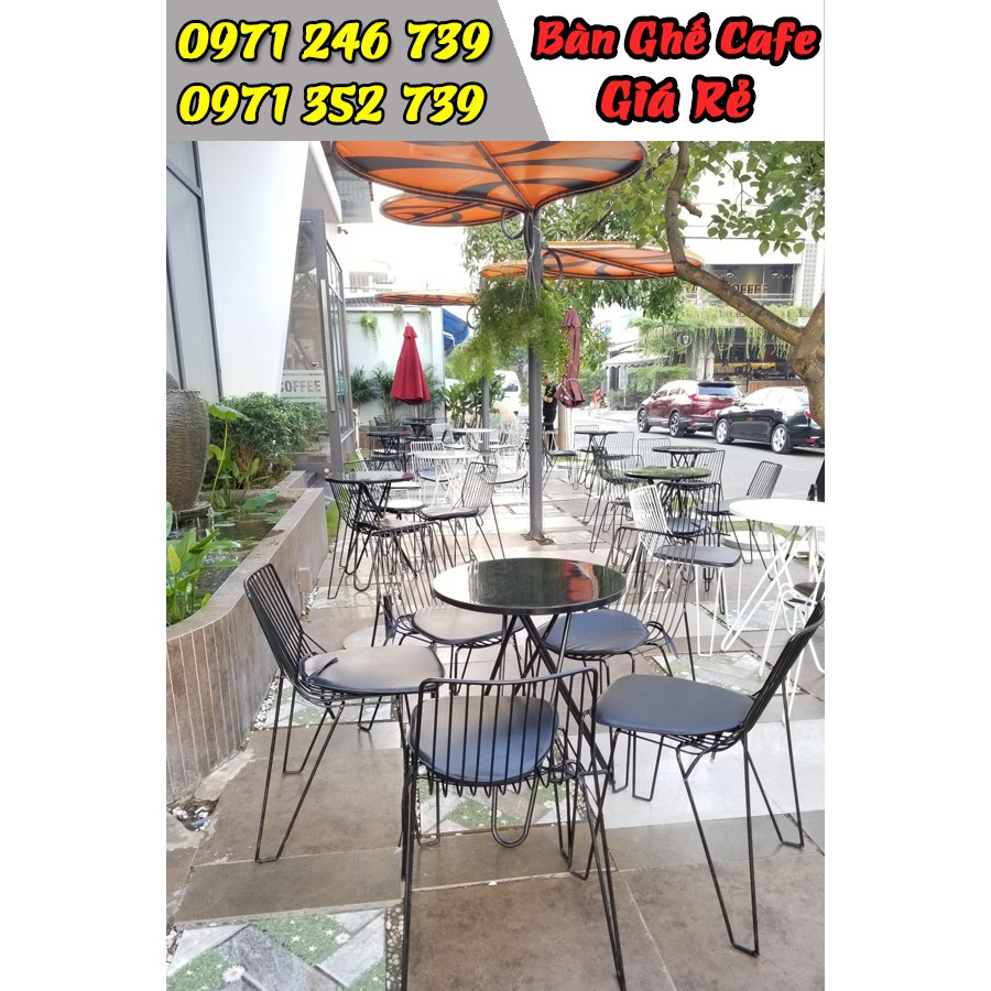 Bàn ghế sắt sơn tĩnh điện phù hợp cho mọi không gian gián cafe, trà sữa, quán ăn, nhà hàng...Bảo hành: 12 tháng.