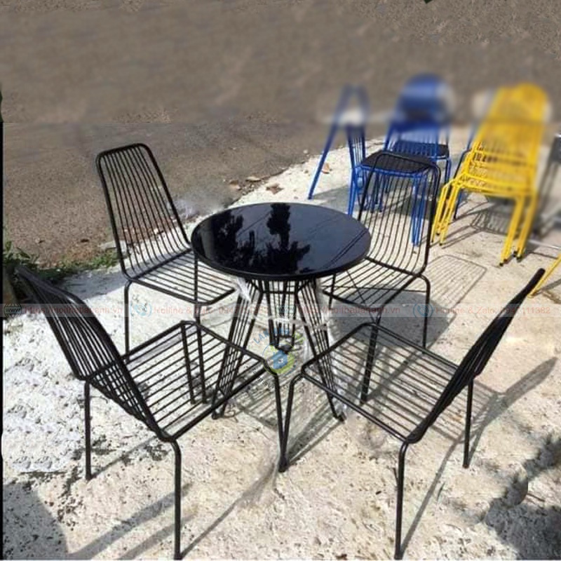 hế cafe sắt sơn tĩnh điện - ghế sắt tăm là mẫu ghế cafe rất thịnh hành hiện nay được rất nhiều thương hiệu lớn lựa chọn. Ghế có thiết kế mềm mại hơi hõm vào phía giữa tạo cảm giác thoải mái tối đa cho người dùng. Khách hàng có thể sử dụng loại không đệm cho không gian ngoài trời hay loại có đệm cho không gian trong nhà. Ghế có chất liệu sắt sơn tĩnh điện đảm bảo độ bền dưới mọi thời tiết.Kích thước: 45x45x82