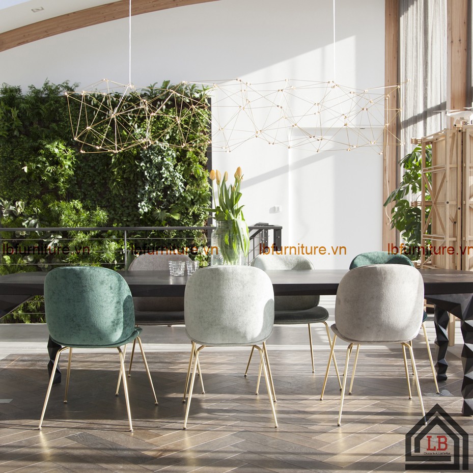 Giới thiệu Ghế cafe vải nhung chân sắt Beetle