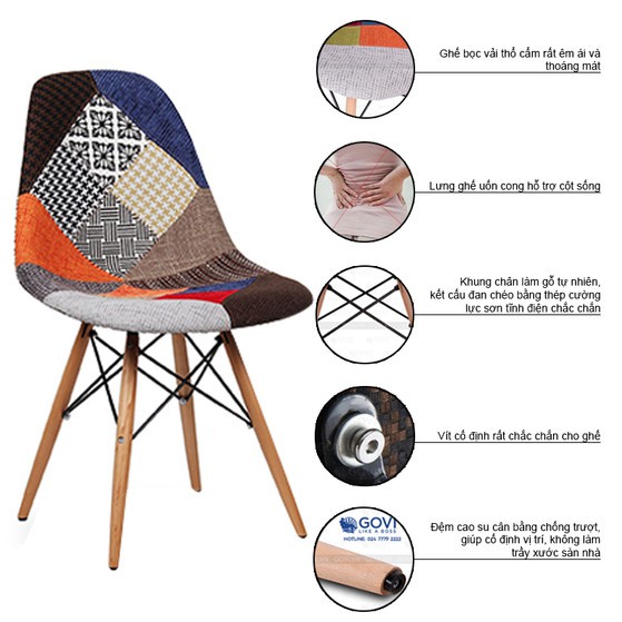 Giới thiệu Ghế cafe - văn phòng bọc thổ cẩm chân gỗ eames