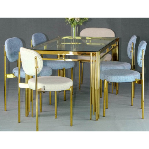 Chất liệu : Chân thép mạ vàng/ chân sắt sơn tĩnh điện , mặt nệm vải bố