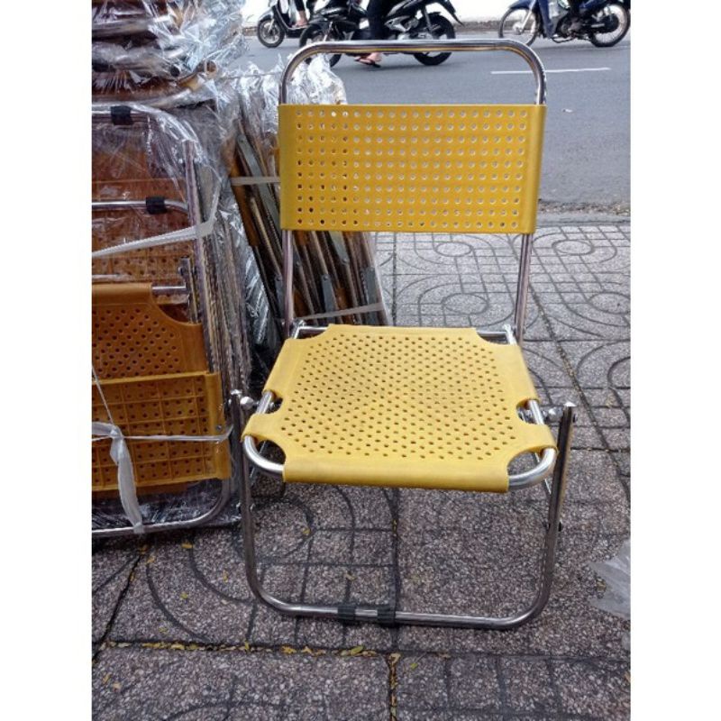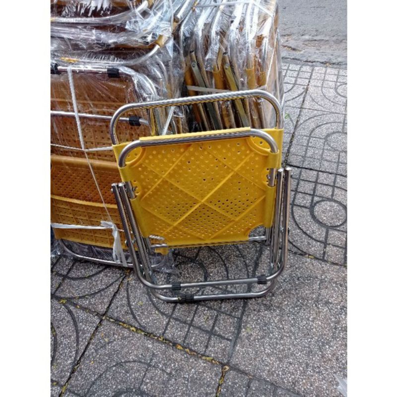 GHẾ CAFE KHUNG INOX MẶT NHỰA được cải tiến từ ghế xếp inox vải bố (thay thế vải bố bằng nhựa PP cao cấp) thường được sử dụng nhiều tại gia đình để nghỉ ngơi trong nhà, ngồi chơi trước nhà, nơi ban công, sân thượng. Ghế cũng được ưu chuộng tại quán nước, quán ăn V V V…mua từ 10 cái trở lên liên hệ 0395 314288 sẽ có giá rẻ hơn