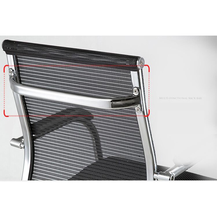 - Cấu tạo khung thép mạ chrome chắc chắn, phần tựa lưng hơi cong giúp ôm sát cơ thể và hỗ trợ nâng đỡ bộ phận cột sống thẳng tự nhiên, giảm thiểu sự mệt mỏi khi ngồi họp lâu.