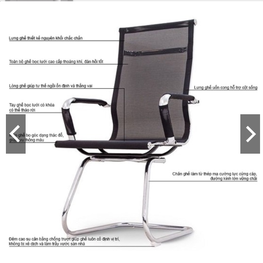 + Ghế mặt nệm lưng đan dạng lưới kết hợp sắt mạ Crom