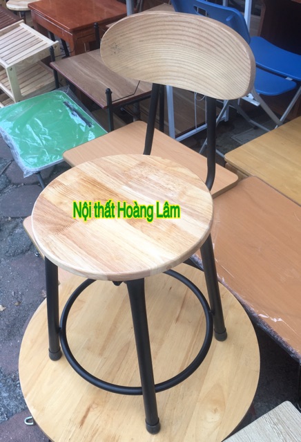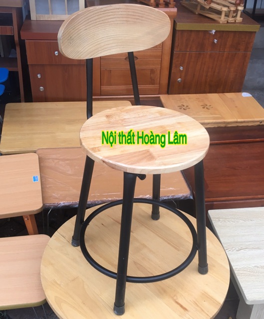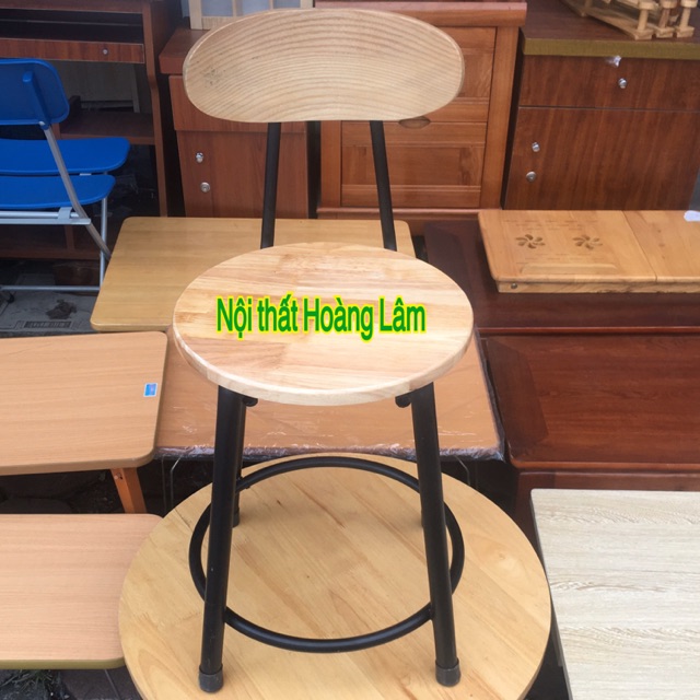 Ghế chân sắt mặt gỗ cao su có tựa lưng ( HOẢ TỐC 1 GIỜ)