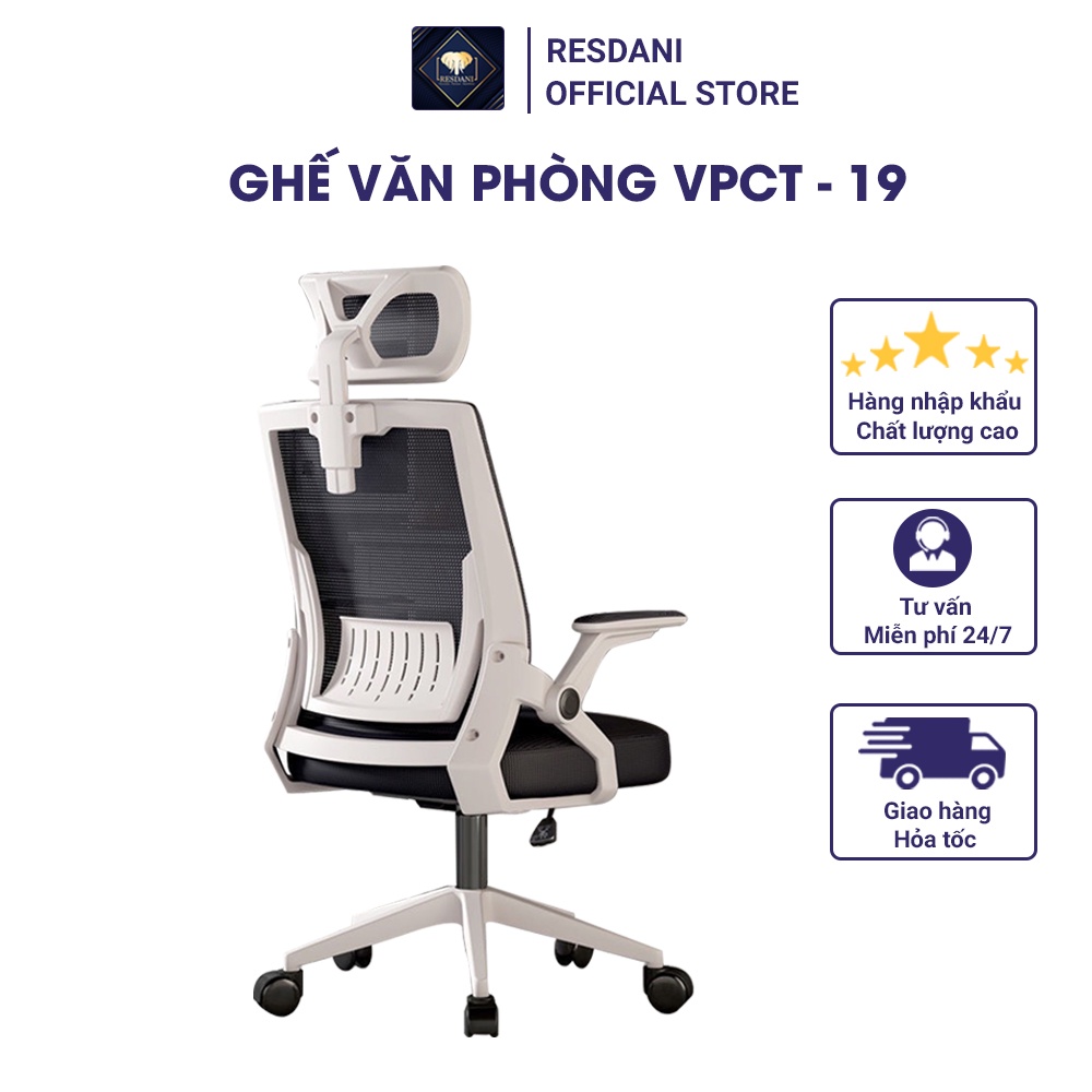 Ghế Chân Xoay Văn Phòng Resdani, Làm Việc Tay Gấp Nệm Lưới Tựa Đầu