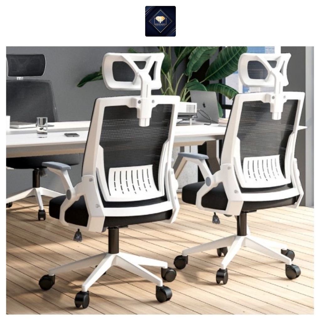 Giới thiệu Ghế Chân Xoay Văn Phòng Resdani, Làm Việc Tay Gấp Nệm Lưới Tựa Đầu
