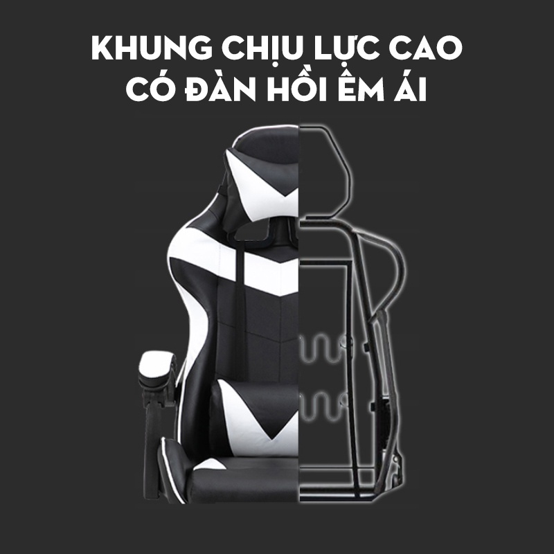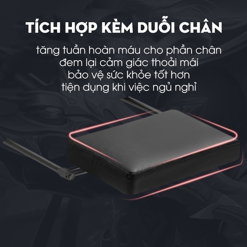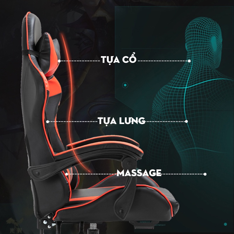 - Ghế chơi game có Massage giúp giảm mỏi mông, hông, đau vai và tay. Có phần tựa duỗi chân tạo sự thoải mái