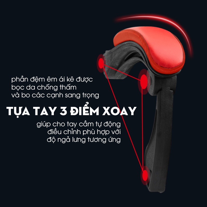 - Phần tay ghế thiết kế 3 điểm xoay giúp tự động điều chỉnh theo