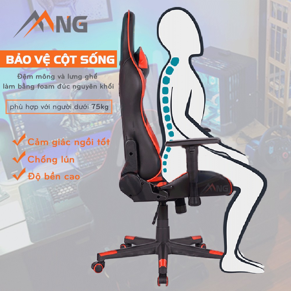 - Toàn bộ đệm mông và lưng ghế được làm bằng foam đúc nguyên khối với chất lượng rất cao. Loại đệm này cho cảm giác ngồi tốt, phẳng, chống lún và có độ bền cao hơn rất nhiều so với kiểu đệm vụn, hoặc chỉ là nhồi bông như một số loại ghế gaming giá rẻ trước đây.
