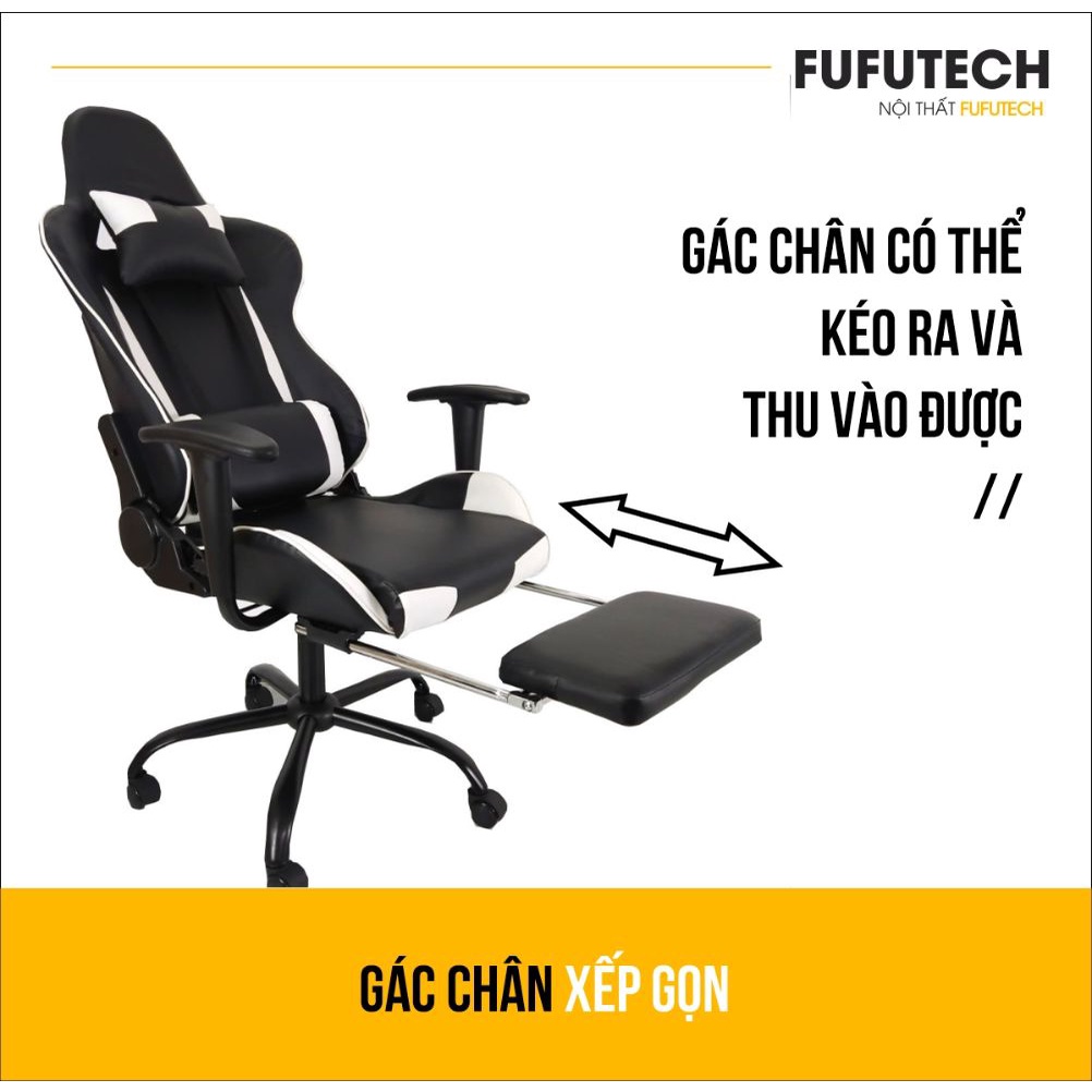 Ghế Chơi Game FUFUTECH Có Gác Chân, Ngã 180 Độ, Da Căng Mịn Không Nhăn