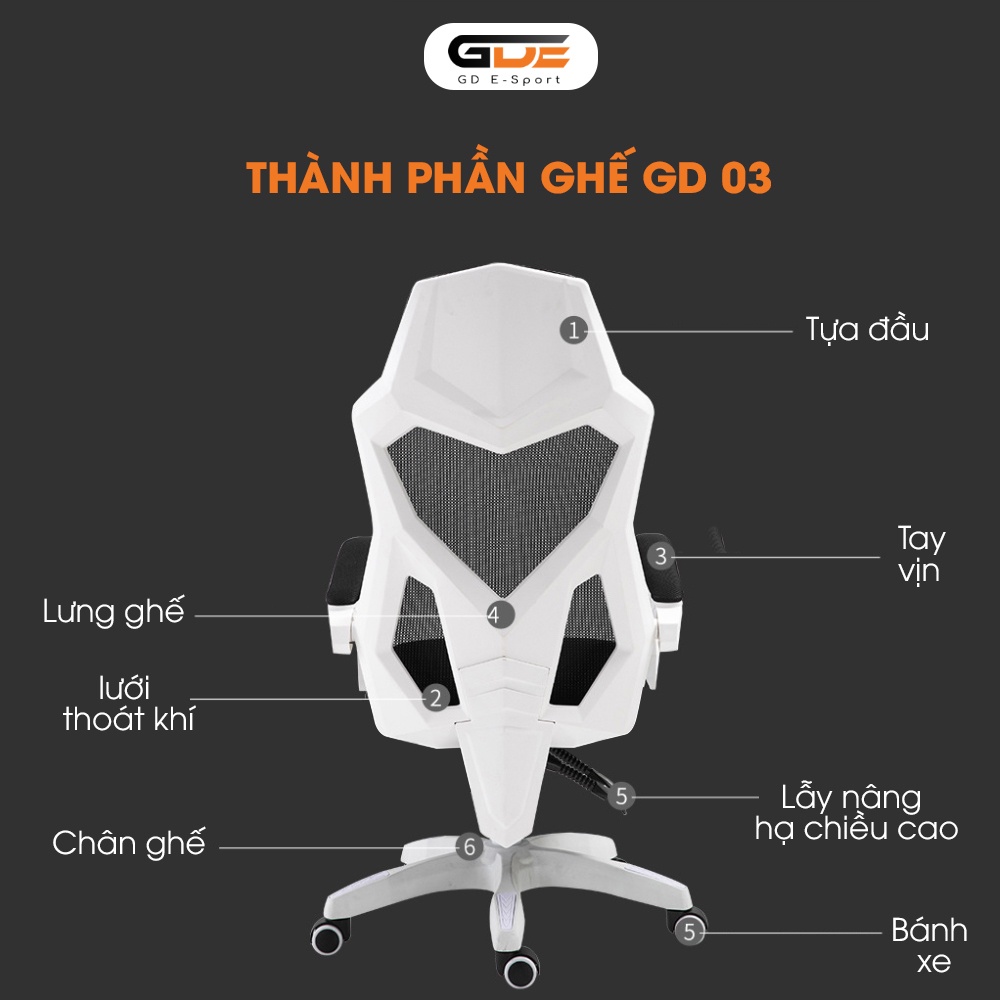 Giới thiệu [Mã BMBAU300 giảm 10% đơn 499K] Ghế Chơi Game, Thiết Kế Công Thái Học GD E-sport Model GD-03 Hàng Nhập Khẩu