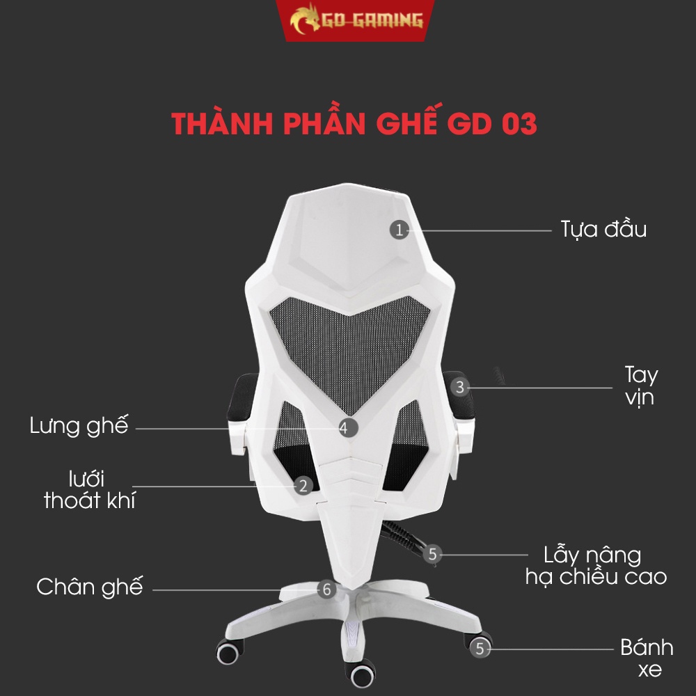 Ghế Chơi Game Thiết Kế Công Thái Học GD E-sport Model GD-03 Chất Liệu Đệm Lưới