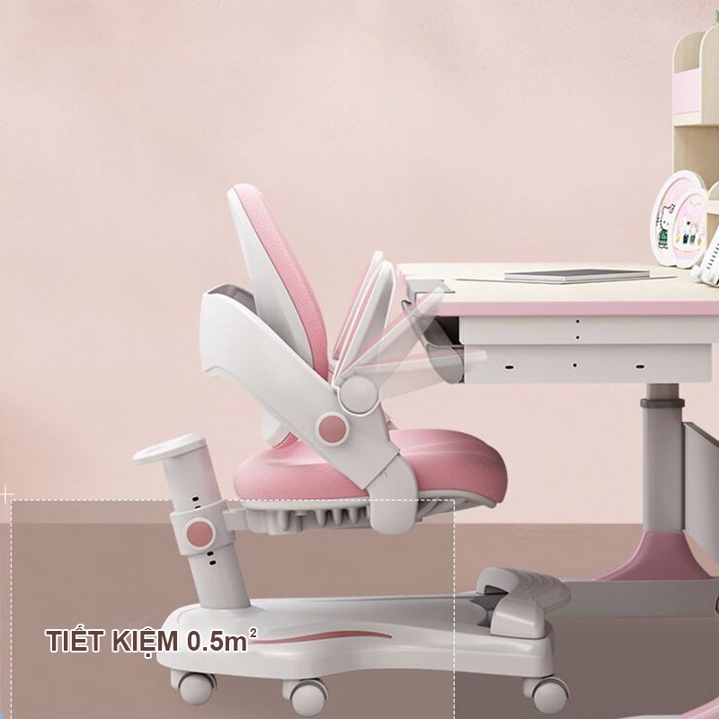 Ghế có thê thay đổi cao lên theo chiều cao của trẻ. Nó được thiết kế tạo cảm giác thoải mái khi ngồi và được khuyến nghị sử dụng khi khi phải thay đổi vị trí ngồi thường xuyên. Ghế bao gồm hai miếng đỡ mềm riêng biết ở lưng ghế được thiết kế theo cấu trúc của cột sống giúp giảm 65% áp lực tới cột sống và thắt lưng làm trẻ thoải mái khi ngồi. Cuối cùng ghế thêm tay gắn sau ghế để dễ di chuyển.MẸO ĐẶT HÀNG