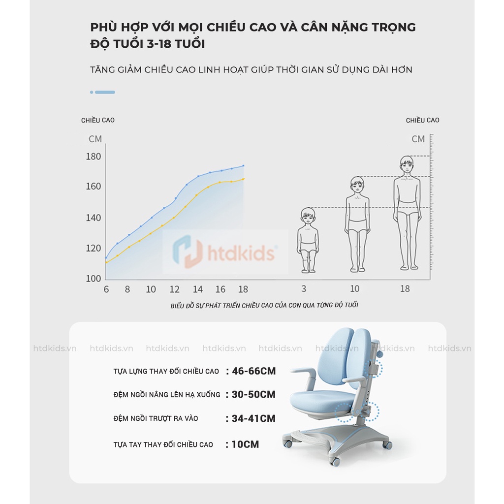✅ Sản xuất và phát triển dựa trên các số liệu nghiên cứu thực tế: Hoàn toàn phù hợp với mọi loại hình thể của trẻ