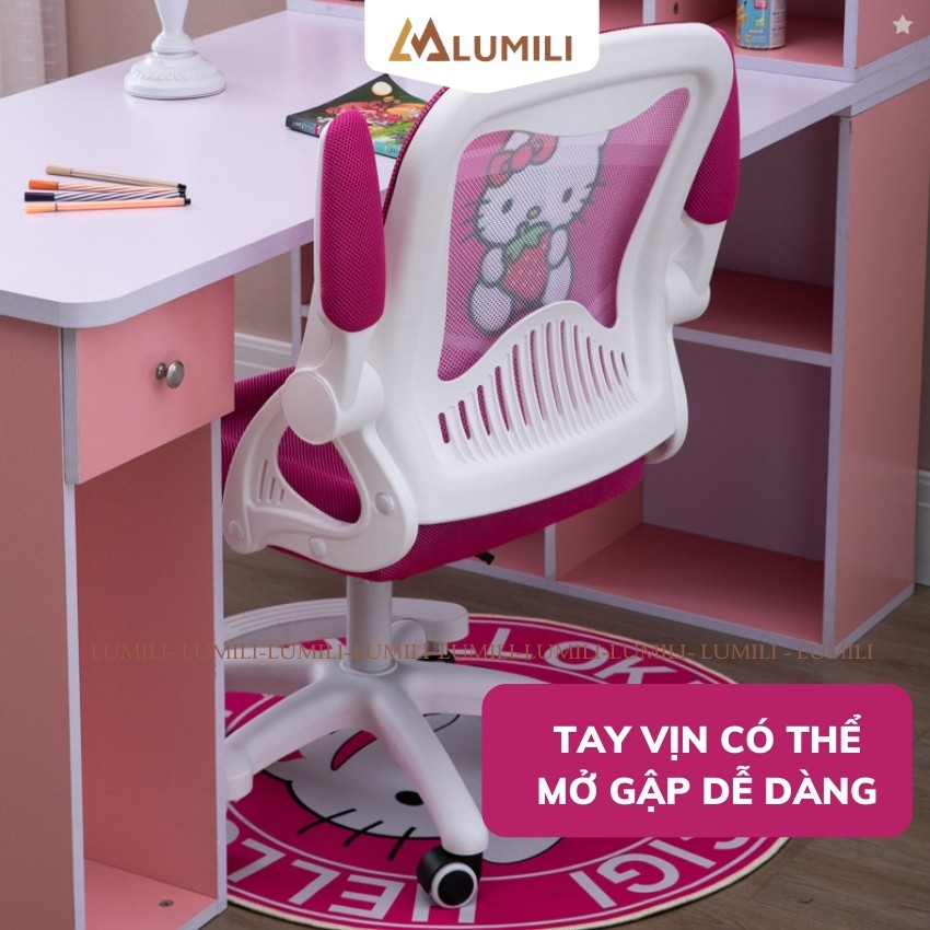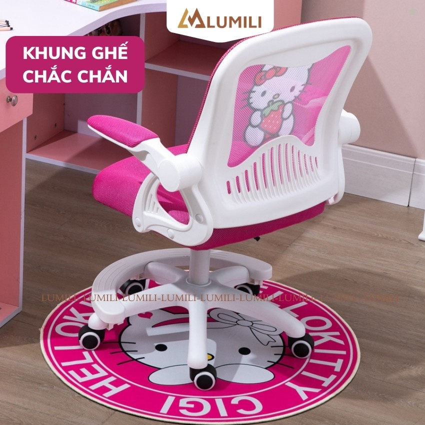 Ghế chống gù trẻ em Lumili H2 ghế ngồi cho bé hình đáng yêu có tay vịn, bánh xe xoay 360 độ phù hợp với học sinh