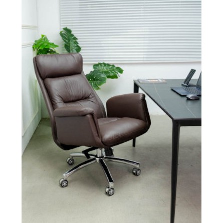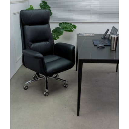 Ghế giám đốc sang trọng . Một mẫu ghế làm việc cao cấp dành cho không gian phòng làm việc của giám đốc, trưởng phòng…Với chất liệu bề mặt nệm bọc da bò thật kết hợp chân hợp kim xi bóng. Ghế còn có chức năng ngả lưng giúp người ngồi thư giản trực tiếp trên ghếThành phần cấu tạo của mẫu ghế văn phòng sang trọng gồm có bộ phận chân ghế, bánh xe, trục ghế, cần gạt tăng giảm chiều cao mặt ghế, và mặt ghế: